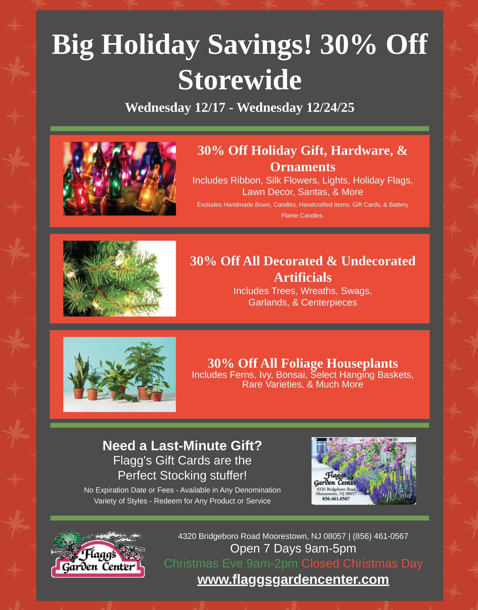 I LOVE Flaggs!! During the flower season I practically live there. They have a great selection of plants both annuals and perennials. A large variety of trees and bushes. The people at Flagg’s are very friendly and helpful no matter what your needs are. I have shopped at Flagg’s for more than 15 years and have never been disappointed.